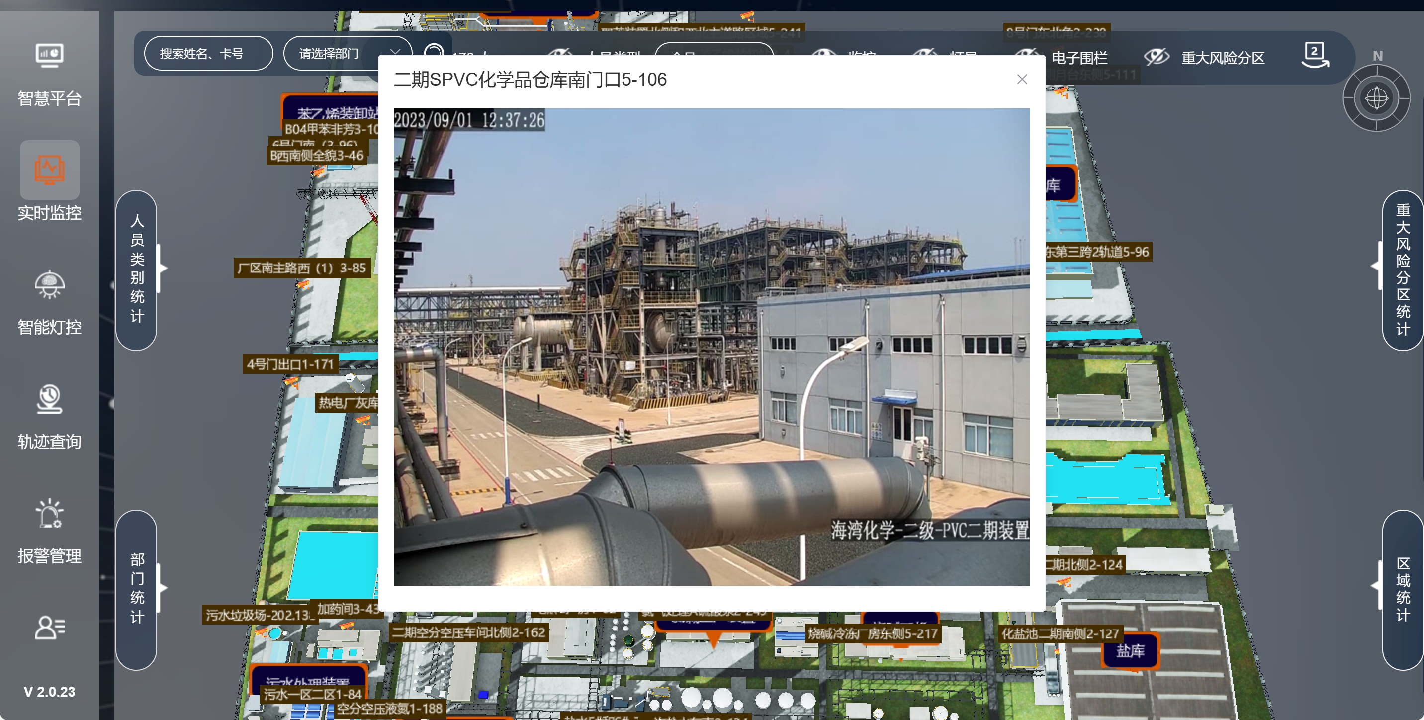 生物化工廠的生產(chǎn)區(qū)域通常包含危險化學(xué)品儲存區(qū)、高壓反應(yīng)釜、精密實驗設(shè)備等高危設(shè)施。傳統(tǒng)依賴人工巡檢或二維地圖的管理方式,難以覆蓋工廠的全域空間,尤其在夜間作業(yè)或突發(fā)事故時,難以及時掌握人員位置并采取行動。
