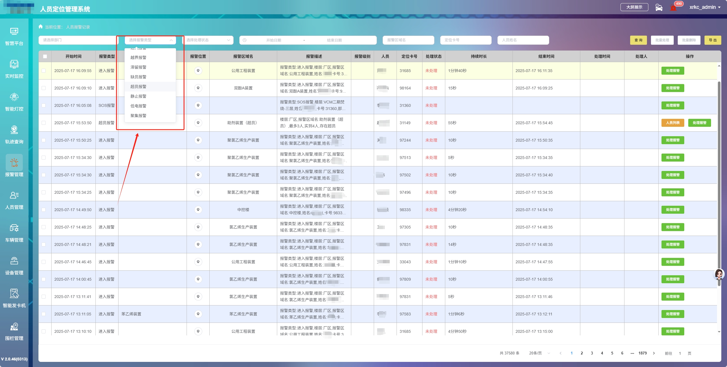 系統配備SOS一鍵呼救功能,員工在遭遇險情時,只需按下定位終端上的SOS按鍵,系統便立即推送警報至管理人員,確保員工能夠及時獲得救援。此外,設置電子圍欄區域,對區域進出權限進行嚴格管理,確保人員在安全范圍內活動。當人員越界時,系統立即啟動預警機制,通知相關人員并啟動應急處理流程。同時,系統內置多種智能預警算法,能夠對人員聚集、超員、缺員、滯留、靜止等異常行為進行監測和預警,有效預防安全事故的發生。