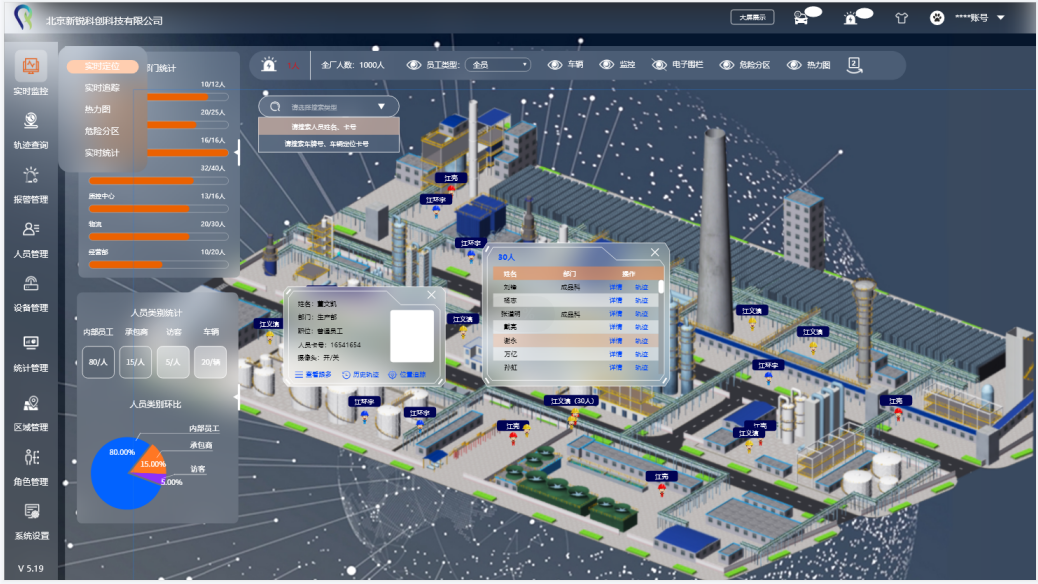 新銳科創根據各地政策要求和企業安全生產需要,融合實時定位系統和專業、開放的生產現場安全智能管控平臺為核心,利用先進的物聯網技術,整合訪客管理、出入口控制、人臉識別、視頻監控、巡檢、電子作業票、環境監測、數據采集等各種管控技術,簡單、穩定、可靠地建設有用、實用、好用的生產現場智慧安全系統,對生產現場安全管理五大要素進行按需定位,實現智慧安全,有效防范風險、主動化解風險!