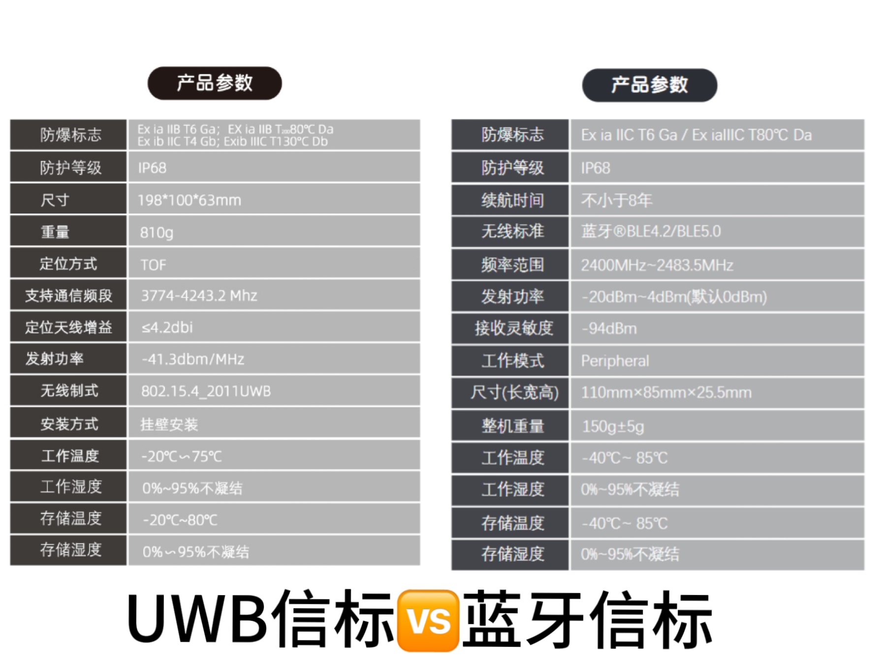 UWB信標和藍牙信標的產(chǎn)品參數(shù)對比: