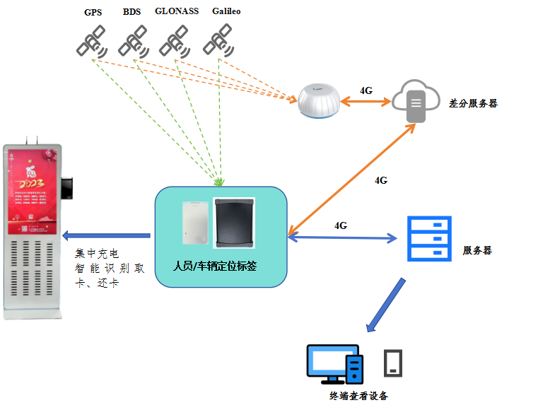北斗高精度定位卡/車載定位儀:接收北斗衛(wèi)星導(dǎo)航系統(tǒng)經(jīng)緯度數(shù)據(jù),通過(guò)4G與差分服務(wù)器相連,獲取差分?jǐn)?shù)據(jù)信息,在卡片結(jié)算出位置信息,通過(guò)4G網(wǎng)絡(luò)將位置信息回傳到服務(wù)器;